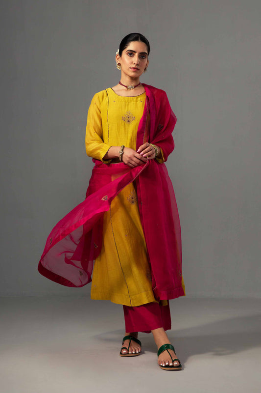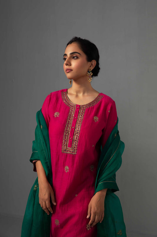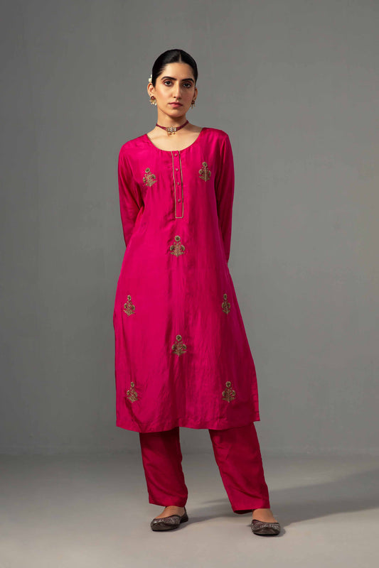 Indu Ghera Kurta Set of 3 - Dark Pink
