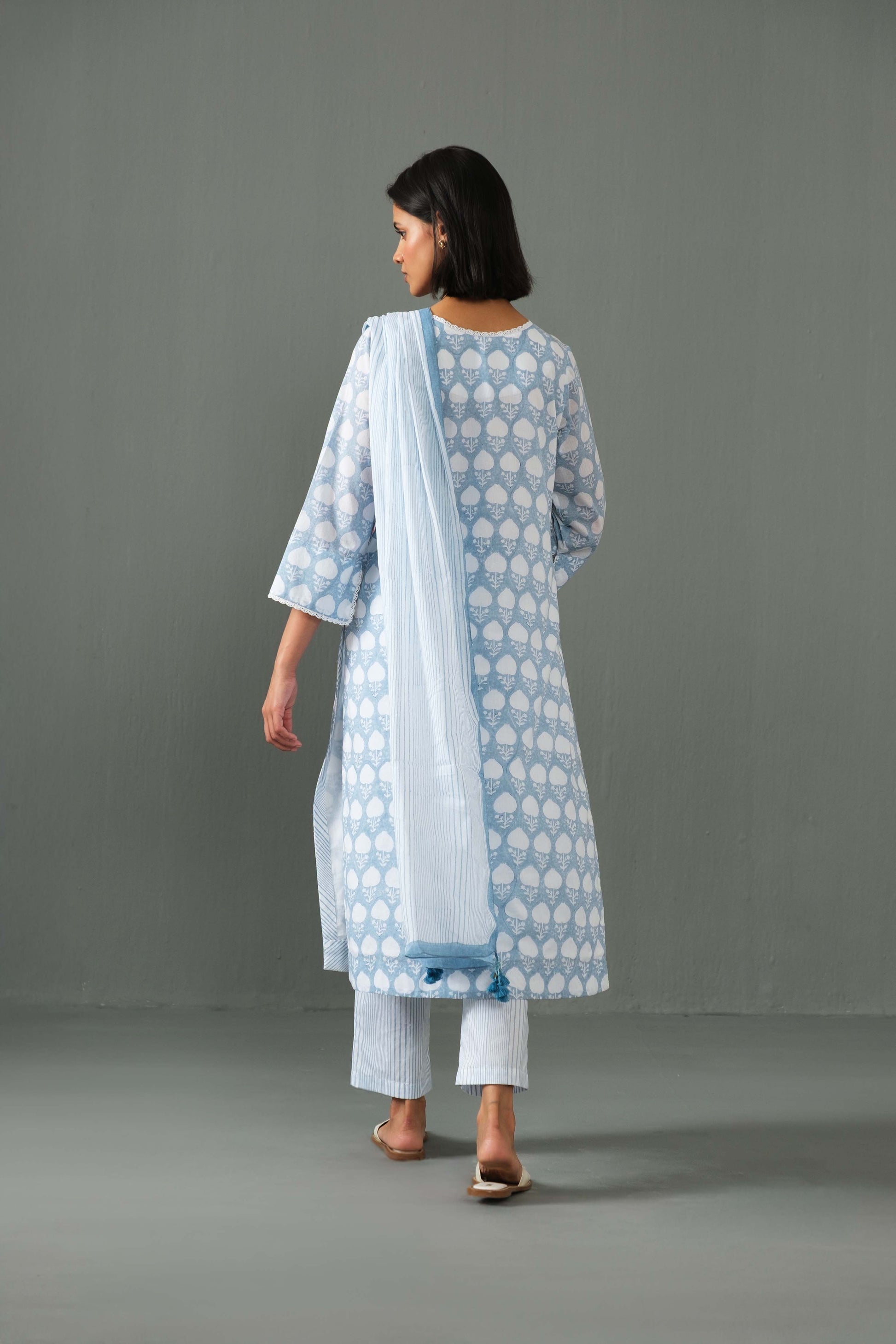 Abha block print kurta set- Blue