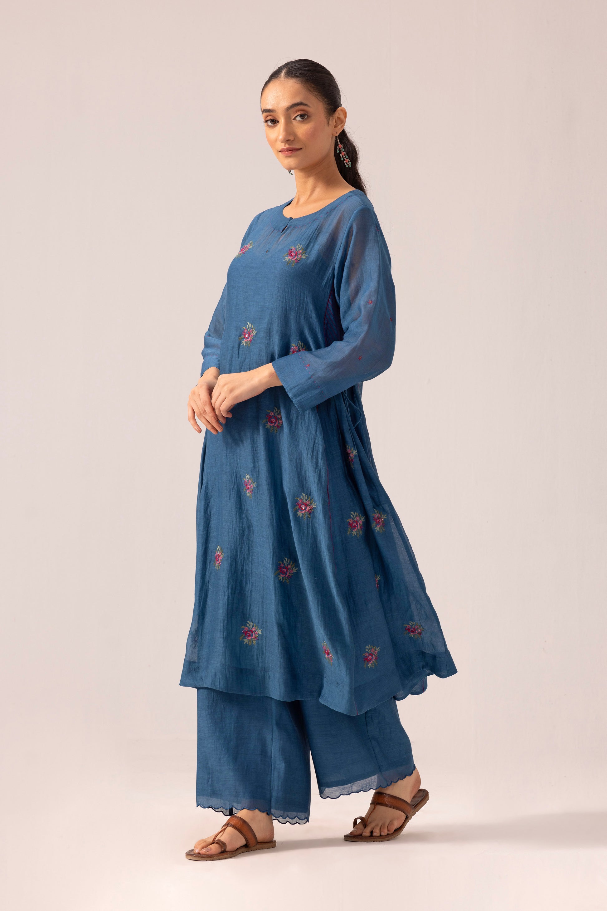 Hand embroidered and fully lined chanderi Kurta and pant comes with Cotton Slip