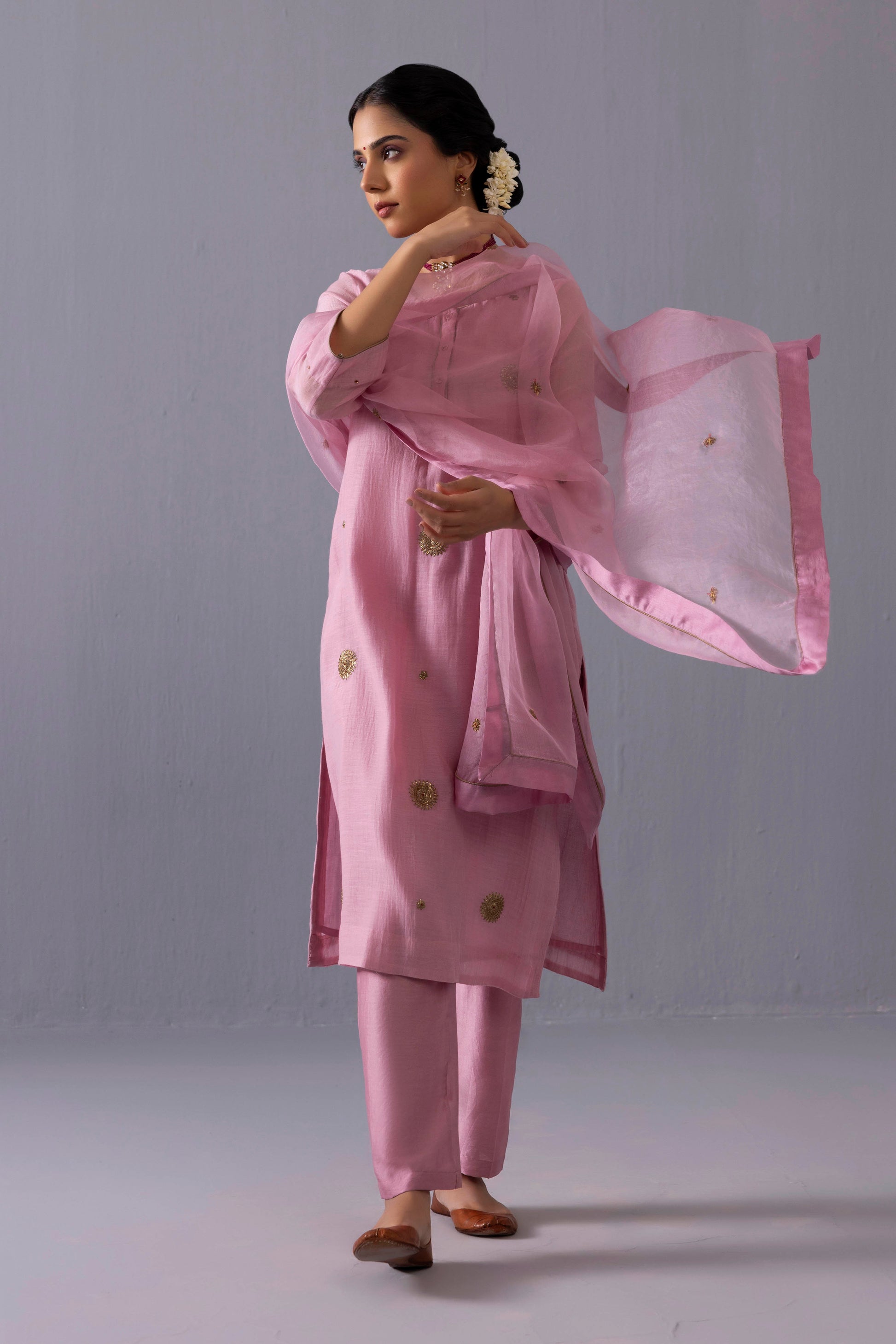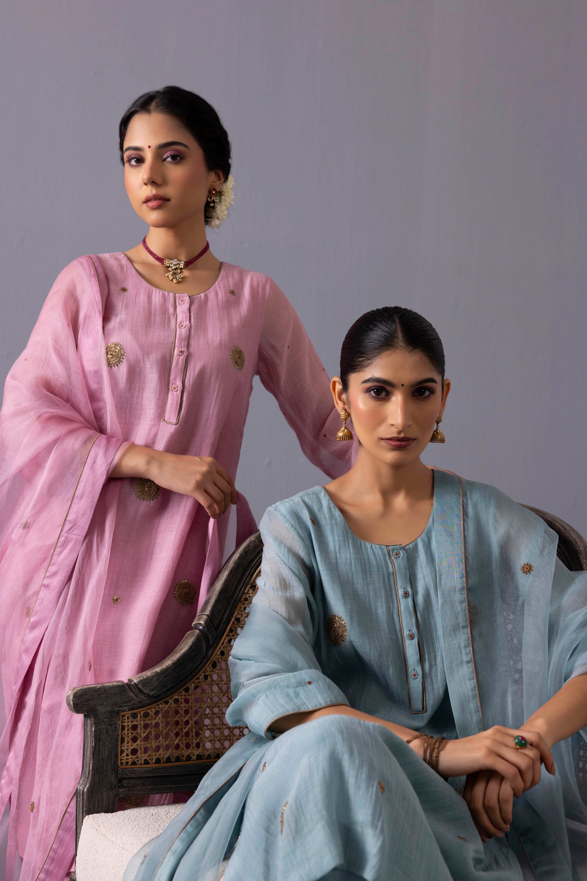 Fabric : Kurta -Chanderi , Lining- Cotton, Pant- Chanderi , Dupatta- Organza
