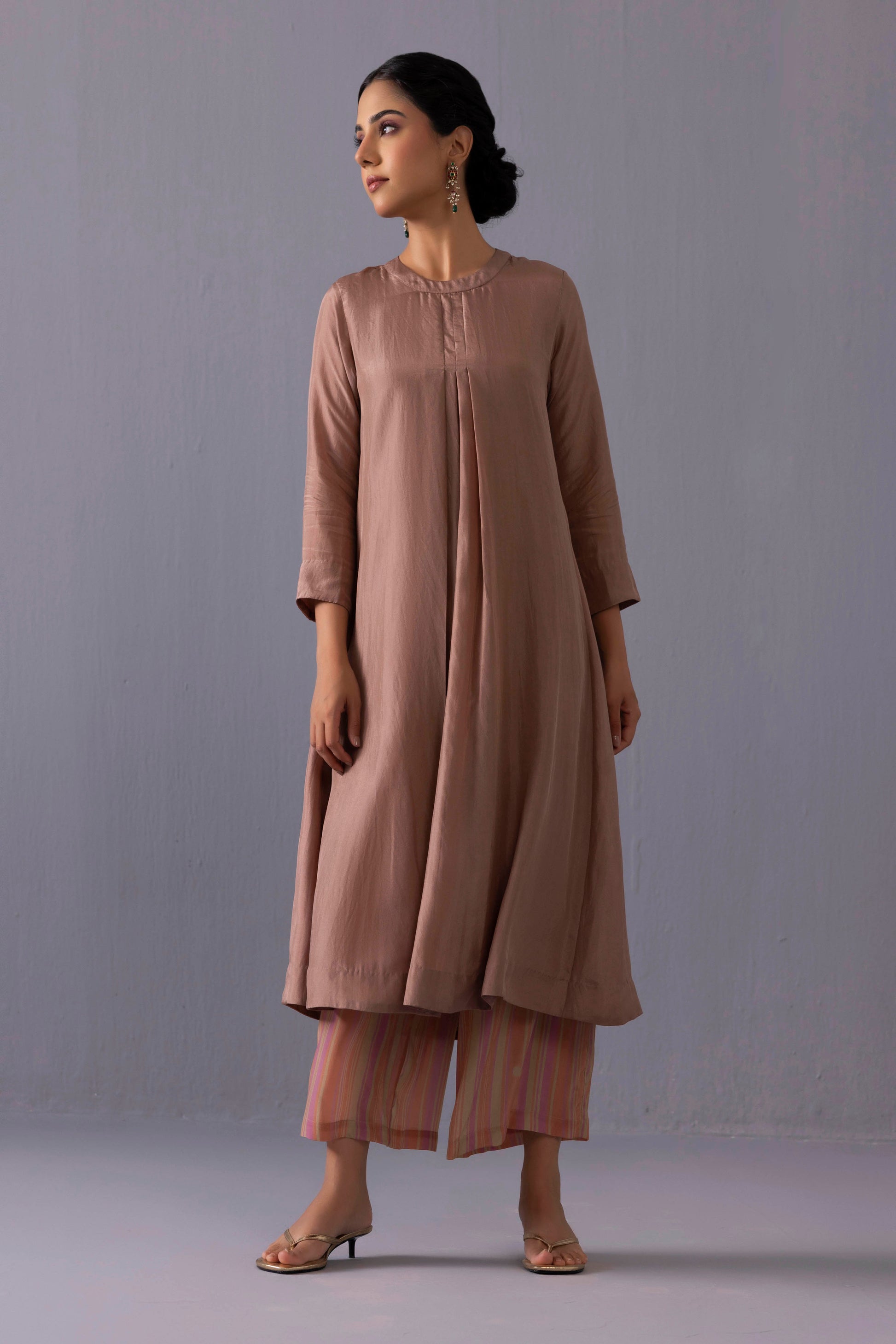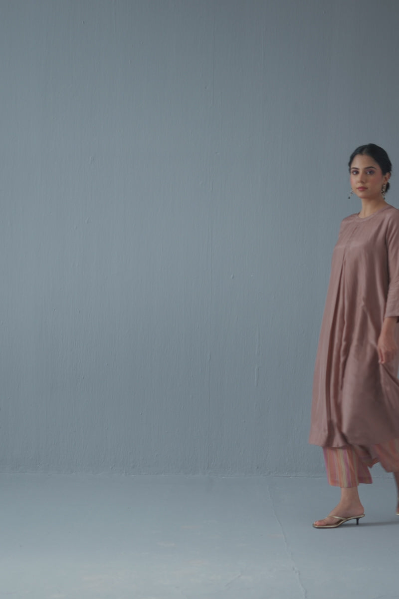 Crafted in pure silk, this pleated kurta is paired with stylish printed pants. Versatile and elegant, it can be dressed up or down to suit any occasion.