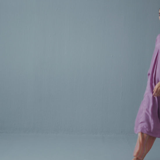 Crafted in pure silk, this pleated kurta is paired with stylish printed pants. Versatile and elegant, it can be dressed up or down to suit any occasion.